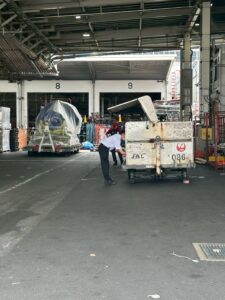 成田空港へお迎えに行き、海外空輸棺からストレッチャーに移し替え